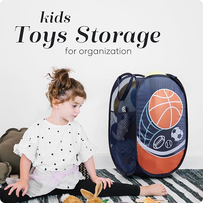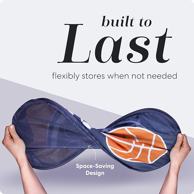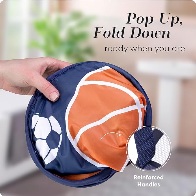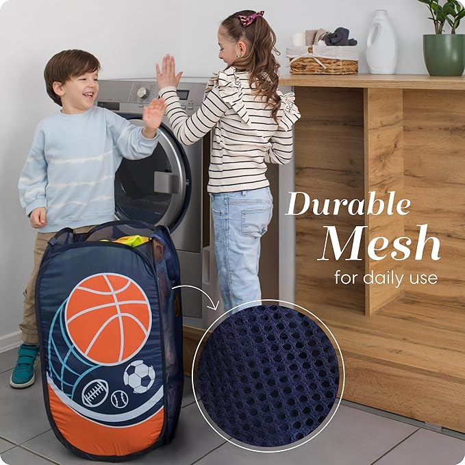 Handy Laundry Collapsible Mesh Pop Up Hamper with Wide Opening and Side Pocket - Breathable, Sturdy, Foldable, and Space-Saving Design for Clothes and Storage (Sports)