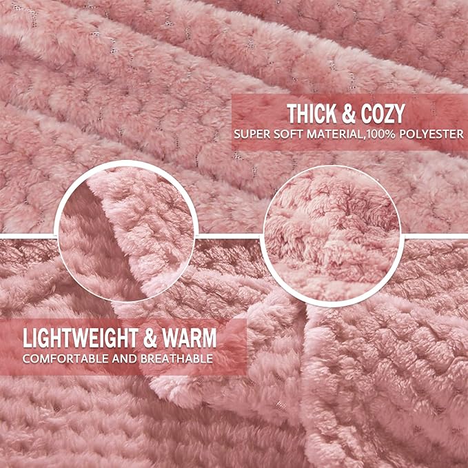 Exclusivo Mezcla Fleece Bed Blanket Twin Size, Super Soft and Warm Blankets for Couch, Sofa and Bed Waffle Textured, Cozy, Fuzzy and Lightweight (Dusty Pink, 90x66 Inches)