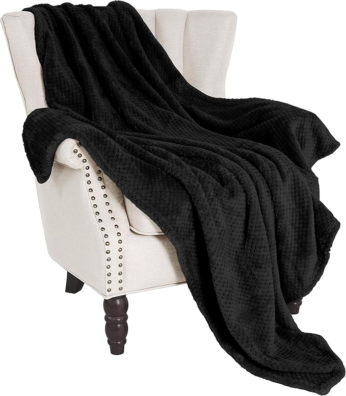 Exclusivo Mezcla Fleece Throw Blanket Extra Large, Super Soft and Warm Blankets for Couch, Sofa and Bed Waffle Textured, Cozy, Fuzzy and Lightweight (Black, 50x70 Inches)