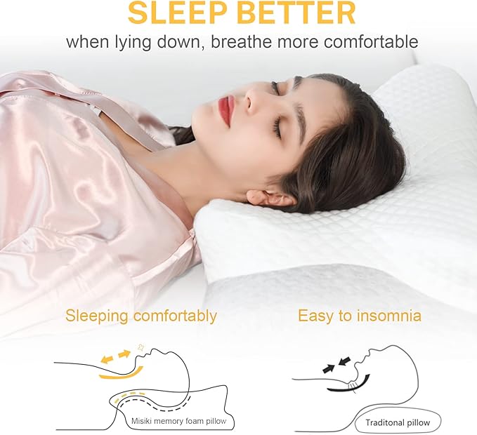 Misiki Cervical Memory Foam Pillow, Orthopedic Pillow Contour Pillow for Neck Pain, Cervical Ergonomic Pillow for Side Sleepers, Back and Stomach Sleep