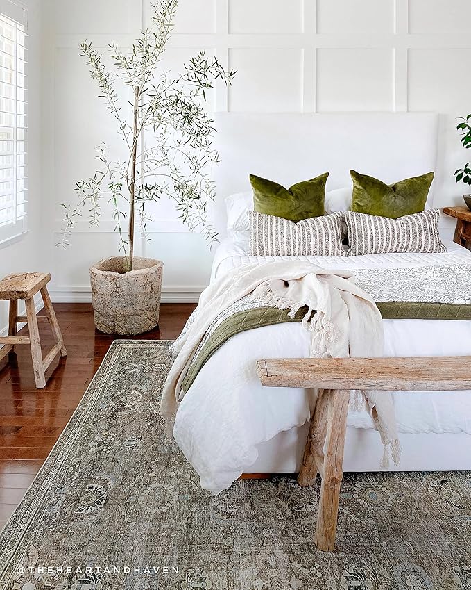 Loloi Layla Collection LAY-13 Antique/Moss 5'-0" x 7'-6" .13" Thick Area Rug, Soft, Durable, Vintage Inspired, Distressed, Low Pile, Non-Shedding, Easy Clean, Printed, Living Room Rug