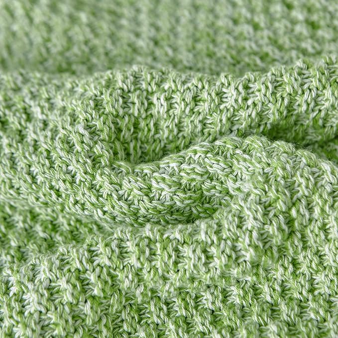 Longhui bedding Green Knitted Throw Blanket for Couch, Soft, Cozy Machine Washable 100% Cotton Sofa Knit Blankets, Heavy 4.0lb Weight, 60 x 80 Inches, Grass Green