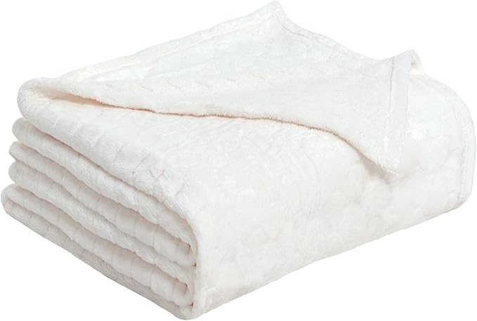 TOONOW Fleece Blanket Fuzzy Plush Throw Blanket 50" x 60", Super Soft Fluffy Bed Blanket Geometric Pattern Comfy Microfiber Flannel Blankets for Couch, Bed, Sofa, Cream White