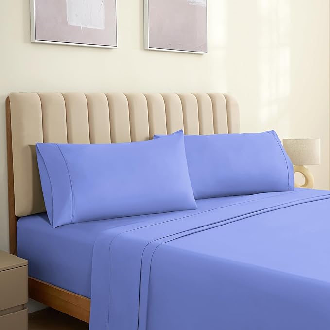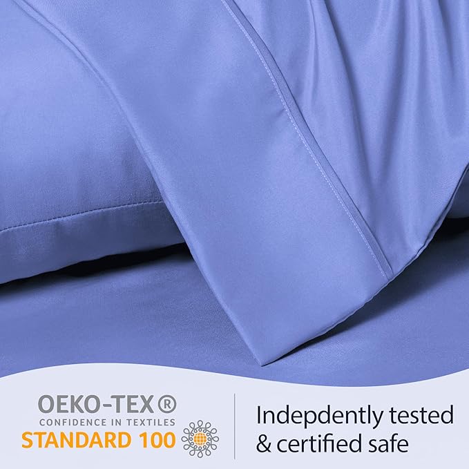 LuxClub Collection Pillowcases 2 Pack - Eco Friendly Wrinkle Free Cooling Pillow Cases with Satin Trim - Machine Washable Hotel Bedding Silky Soft - Violet Blue King