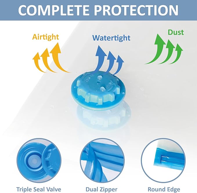 - Lasting effective protection: the space bags use robust double-zip sealer & triple sealed turbo valve to vacuum the air out. Simply vacuum out the air and the vacuum bags will remain compressed & fresh.