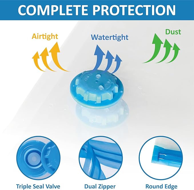 - Lasting effective protection: the space bags use robust double-zip sealer & triple sealed turbo valve to vacuum the air out. Simply vacuum out the air and the vacuum bags will remain compressed & fresh.