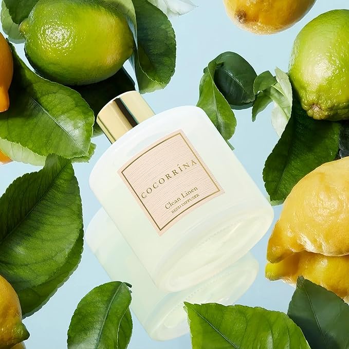Cocorrína Reed Diffuser Set, Clean Linen 6.7 fl oz Scented Diffuser with Sticks Home Fragrance Reed Diffuser for Bathroom Shelf Decor