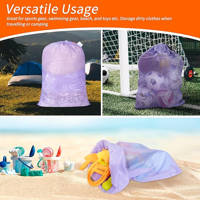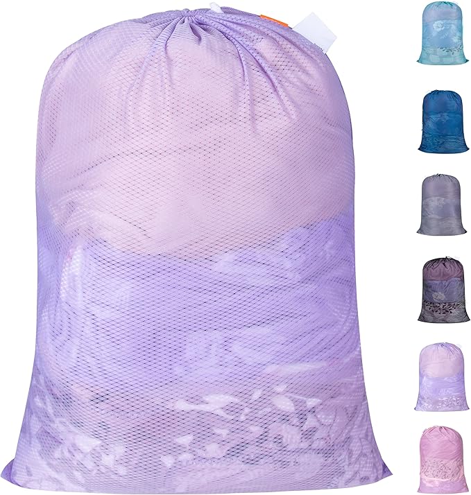 Polecasa Heavy Duty Diamond Large Mesh Laundry Bag with ID Tag and Locking Drawstring Closure - 24 x 36 inches - Laundry Hamper Liner, Washable Laundry Bags for Travel, Sports, Dorms (Purple)