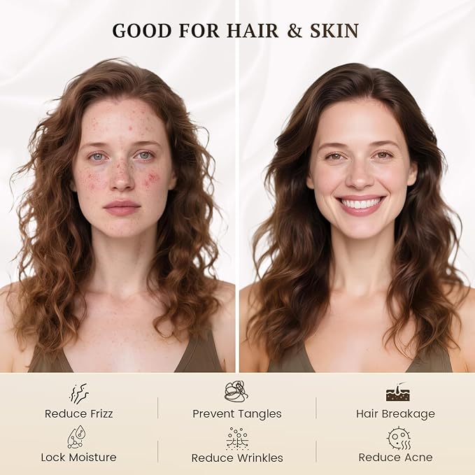 - 【Perfect for Hot and Cold Sleepers】Silk's natural temperature regulating properties keep you comfortable in every season. It can effectively reduce hot or cold irregularities when sleeping by wicking moisture from the body and adjusting to body temperature. Super soft, comfy and smooth yet breathable, best for skin and hair care; helps to retain moisture on your skin.