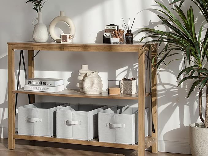 StorageWorks Storage Baskets for Shelves, Foldable Fabric Closet Storage Bins with Handles, Fabric Storage Bins Clothes Organizer, Light Grey, 3-Pack, Large