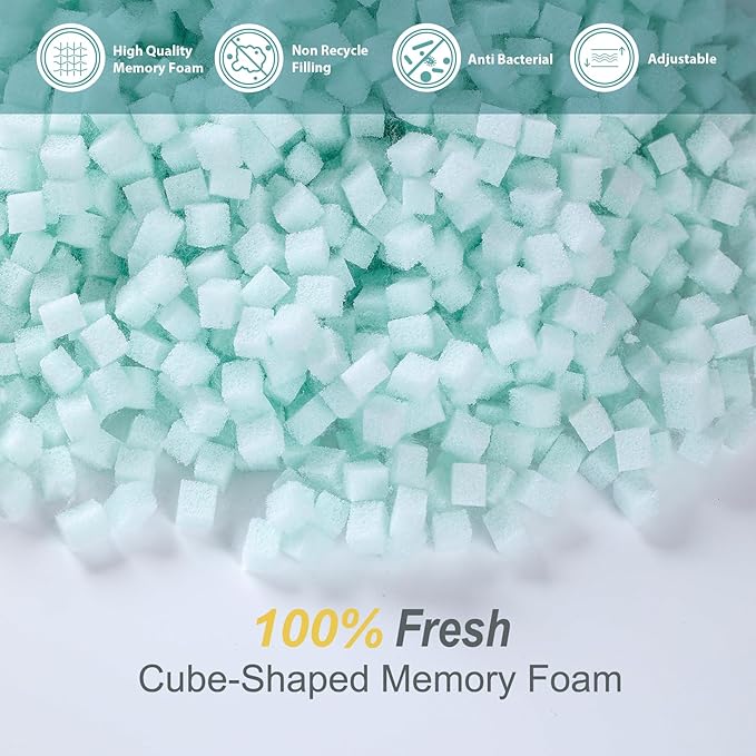 - 🌜【Premium Memory Foam Pillow】: Unlike other pillows, our shredded memory foam pillow use 100% Freshly Manufactured Shredded Memory Foam instead of repurposed filling. With OEKO-TEX STANDARD 100 Certified, there is no harmful substance and strong odor, you could sleep in pleasure all night.