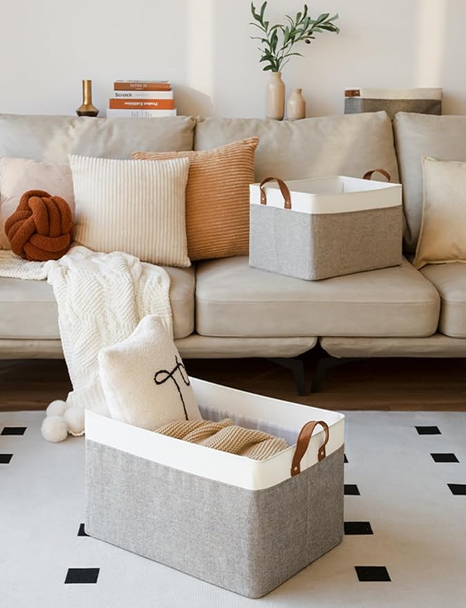 - Handle with Ease: With the 2 PU handles securely riveted to the sides of the storage bin, you can easily carry items without tearing the handles.