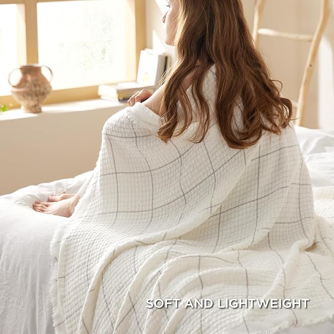 Bedsure Cream Throw Blanket for Bed - White Decorative Woven Throw Gifts with Tassels, Soft and Lightweight Farmhouse Blankets for Couch and Sofa, 50x60 Inches