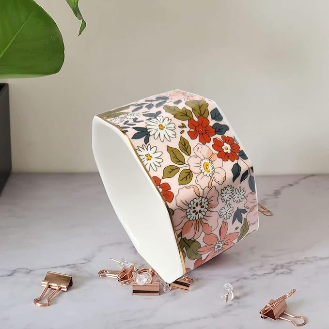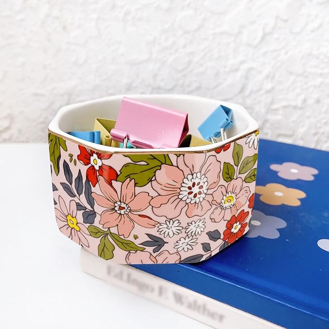 - Material: Made of ceramic Stylish, larger capacity, this Paper clip holder is crafted from durable ceramic, it’s durable and sturdy. The glossy finish beautiflu pink flowers print has sleek and sophisticated design which will give your office such a classy look