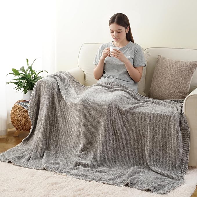 - VERSATILE & COZY: This grey chenille throw blanket is soft and comfortable, You can wrap yourself up while watching TV on the sofa or relaxing on bed. Widely usage makes this cozy throw blanket a great option for your friends and families