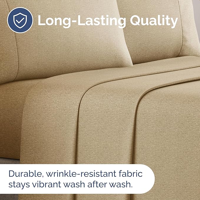 Twin XL Size Flat Sheet - Hotel Quality Top Flat Bed Sheet Only - Ultra-Soft, Comfy, Breathable & Cooling - Fade & Wrinkle Free - Easy-Care, Stain & Shrink Resistant Bedding - Oeko-Tex - Heathered Tan