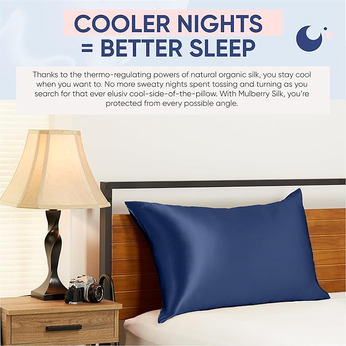 - BETTER & COOLER SLEEP: The temperature regulating properties of the Blissy silk pillowcase allow you to keep cool at all times during the night without the discomfort associated with fluctuating temperature and the constant tossing and turning for a restful night sleep.