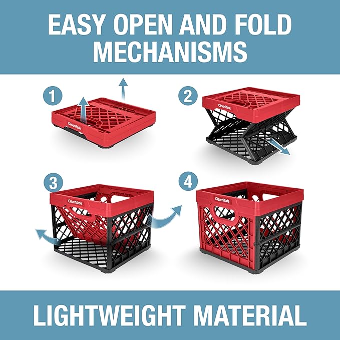 CleverMade Collapsible Milk Crate, Red, 1PK - 25L (6 Gal) Stackable Storage Bins, Holds 50lbs Per Bin - Clevercrates are Heavy Duty, Plastic Collapsible Storage Crate for Multi Purposes