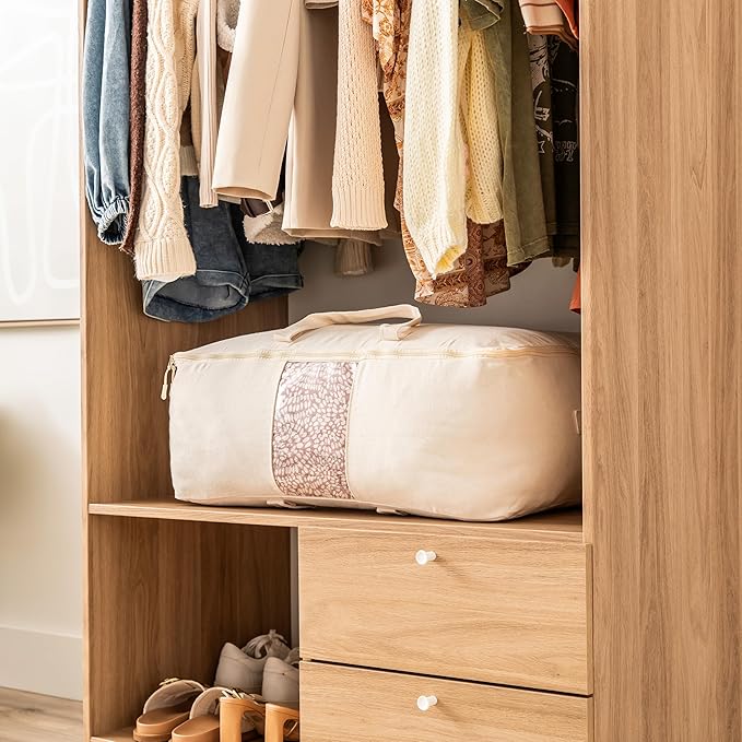- COTTON CANVAS STORAGE WITH CLEAR WINDOW: You need to see which duvet storage or bed sheet storage is inside your case, right? So we added a scratch-resistant window to our beautiful beige canvas storage bag. This big full-sized viewing pane lets you see all your seasonal storage at a glance.