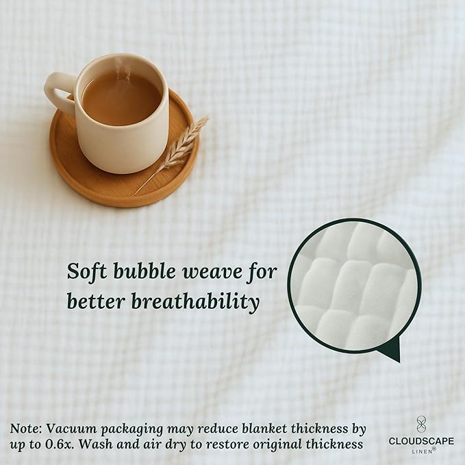 Cloud Scape Linen 100% Cotton 8 Layer Twin Size Muslin Blanket - Breatheable and Soft Winter Blanket for Bed, Couch and Sofa, Oversized Fits up to Twin XL, Best Gift Idea, 68x92, White