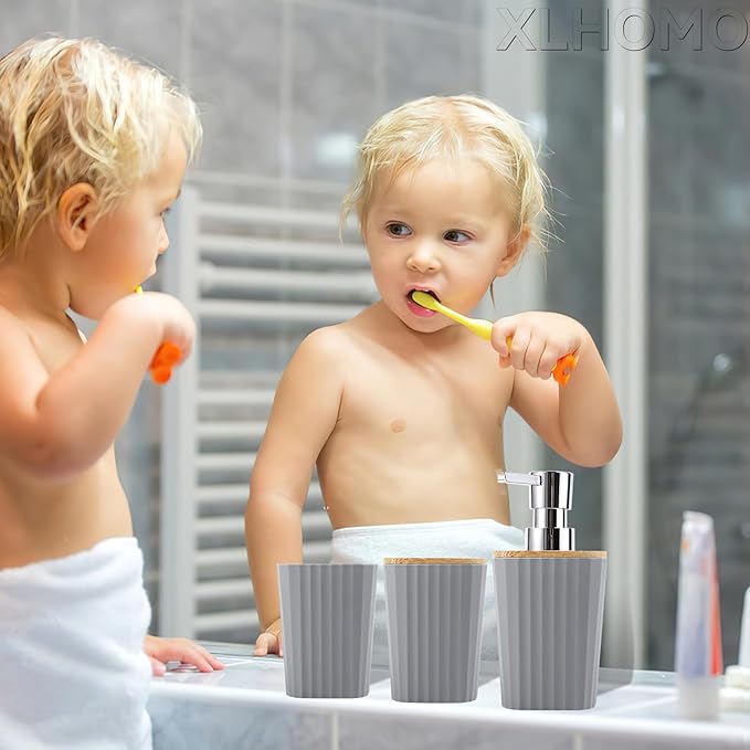 - 【HIGH QUALITY MATERIAL】Our grey bathroom accessories set is made of high-quality PP and ABS material, which is not easy to break, more durable and outperforms glass, ceramic, resin, wooden bathroom sets. Premium plastic pink bathroom sets are durable and they will stay elegant and new over time.