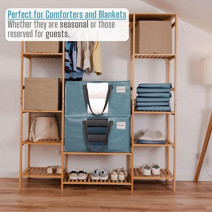 - Stands Upright for Easy Loading & Unloading – You don’t have to worry about your bag falling over while trying to load or unload. With a 2-way zipper top that opens wide, packing and unpacking become smoother than ever. VENO large storage bags stay upright for easy loading with our sturdy and durable PP Woven material that lasts a lifetime and makes moving, storing, and organizing a breeze, making them the perfect comforter, blanket, and bedding organizers.
