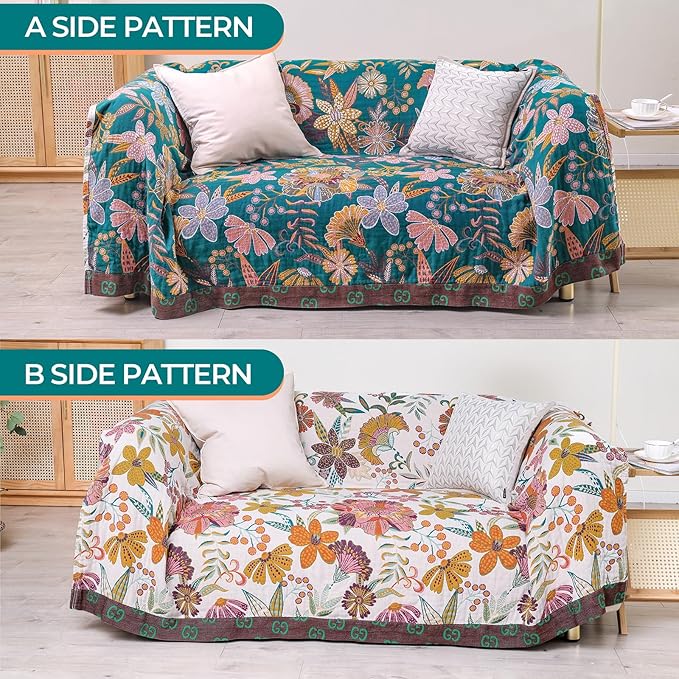 - DOUBLE SIDED DESIGN: Both sides of the cotton sofa blanket can be used, one blanket can be used as two! Classic floral design, bohemian style, makes the blanket look simple and beautiful, Its versatile design is adaptable to suit any interior. use as throws for sofas bed throw.