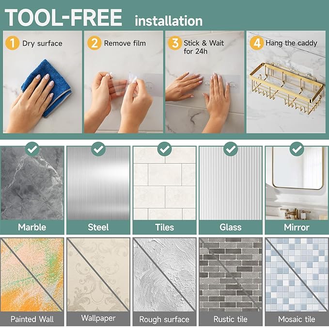 - Versatile for Family Use: Perfect for family bathrooms, this set adapts to various needs, making it easy to organize shampoos, soaps, and more; enhancing shower convenience for everyone