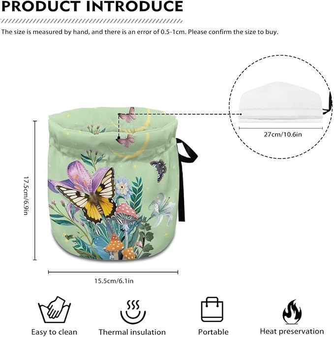 Butterfly Floral Tea Pot Cover Coffee Pot Insulated Kettle Cover Keep Warm Both Durable with Drawstring Sides Can Be Used Tea Cosy for Home Kitchen Decor with Insulated Pads to Warm Up