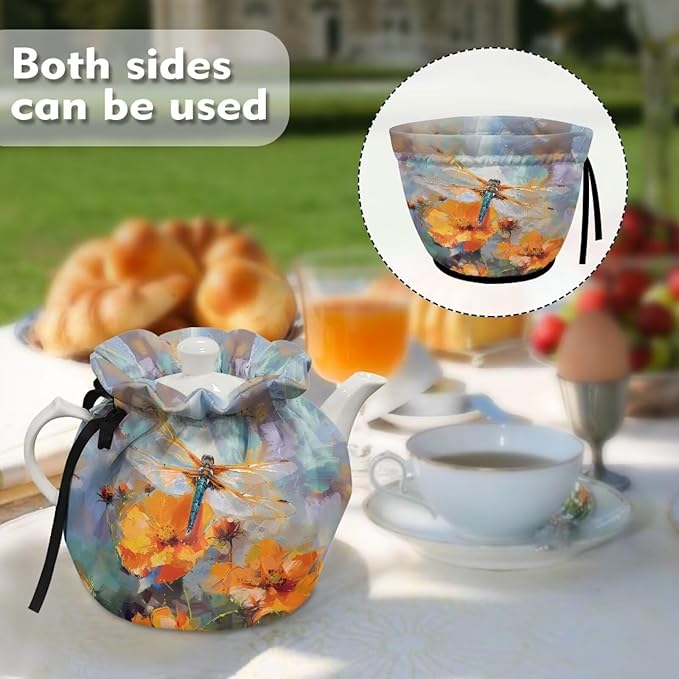 Dragonfly Floral Tea Pot Tea Kettle Decorative Cover Durable Insulated Dustproof Bag Heat-Insulating Preventing Burns Dirt-Resistant Moving Teapot Protection Set Kitchen Accessories