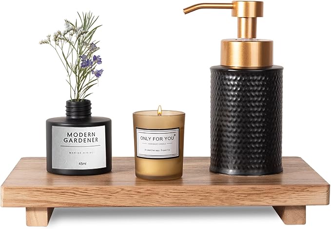 - MULTIFUNCTION WOODEN RISER: The perfume tray will match well with the items you put on it, such as skincare, plants, candles, perfumes, jewelry, etc; Besides, Whether you put this Small Wooden Riser in the room or living room or entryway or sink or vanity, this Wood Soap Pedestal can serve a good purpose.