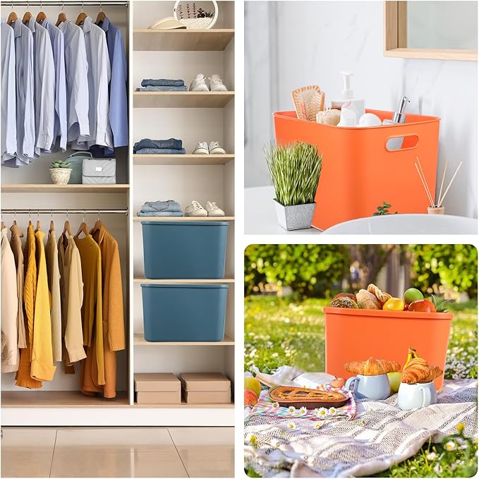- Enough Quantity: our desktop storage box is a set of 8, with 2 colors of blue and orange, 4 pieces for each color, the quantity is enough, so you can use storage baskets as cooking utensil storage, clothing storage, daily necessities storage, office storage and more