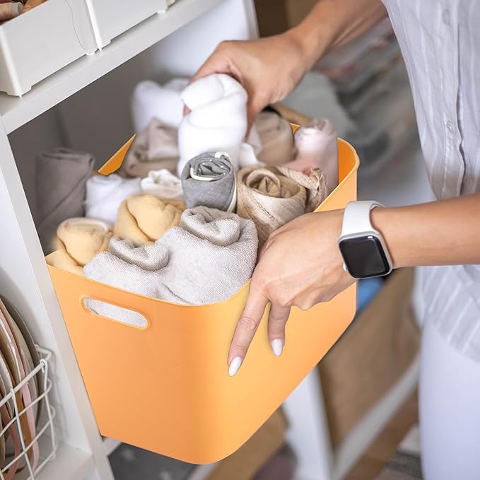 - Enough Quantity: our desktop storage box is a set of 8, all are yellow, and the quantity is enough, so you can use storage baskets as cooking utensil storage, clothing storage, daily necessities storage, office storage and more