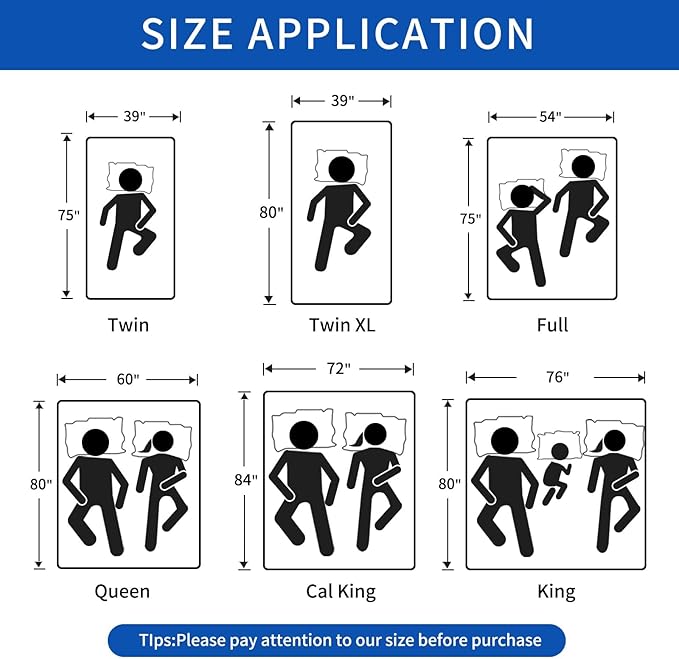 - Adjustable Straps & Non-Slip Bottom: Equipped with adjustable straps and a non-slip bottom design to keep the memory foam mattress topper securely in place throughout the night for worry-free comfort.