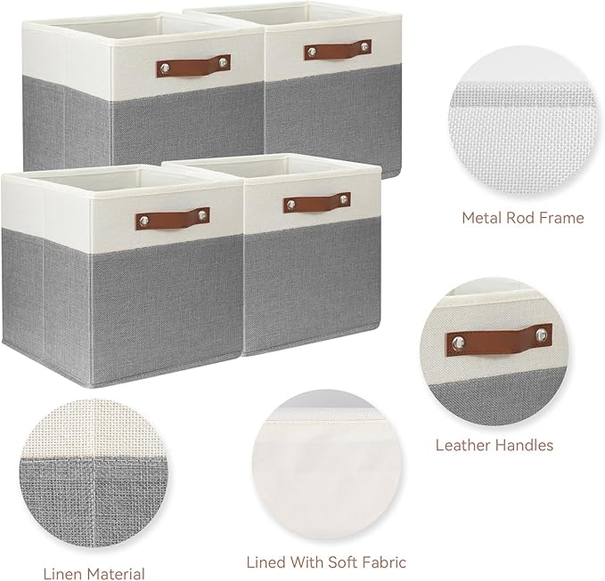 - 【Set of 4 Large Storage Baskets】Set of 4 Collapsible Fabric Storage baskets with Handles, The size of each storage baskets is 13x 13x 13 inches(33*33*33 cm). Color: White/Grey