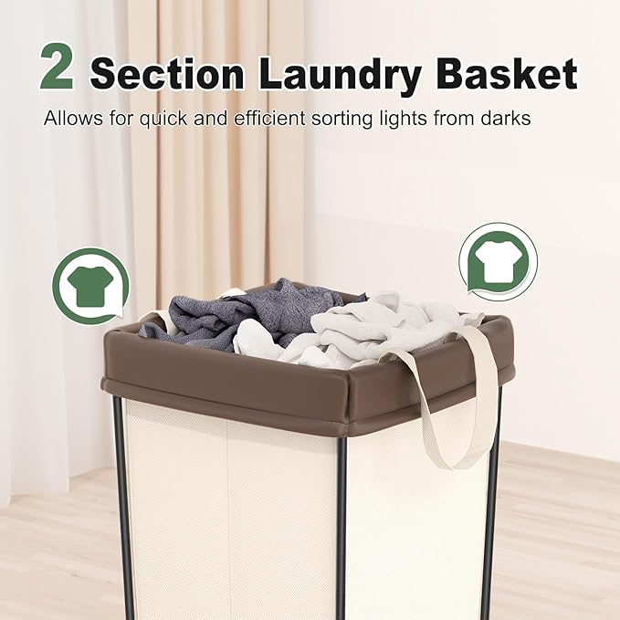 - 2 Section Laundry Basket: The dual-compartment design allows for quick and efficient sorting, whether it’s separating wet from dry clothes or lights from darks, making laundry preparation faster and more organized. This simple but effective feature can save you significant time and prevent sorting errors.