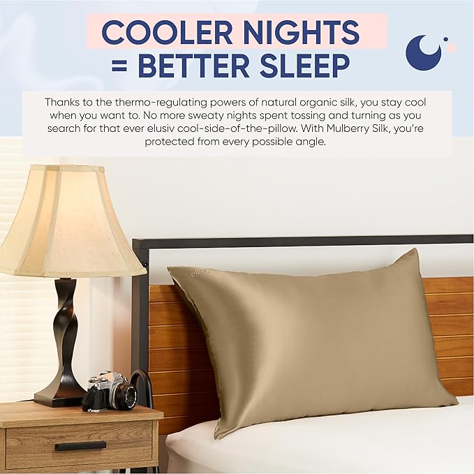 - BETTER & COOLER SLEEP: The temperature regulating properties of the Blissy silk pillowcase allow you to keep cool at all times during the night without the discomfort associated with fluctuating temperature and the constant tossing and turning for a restful night sleep.