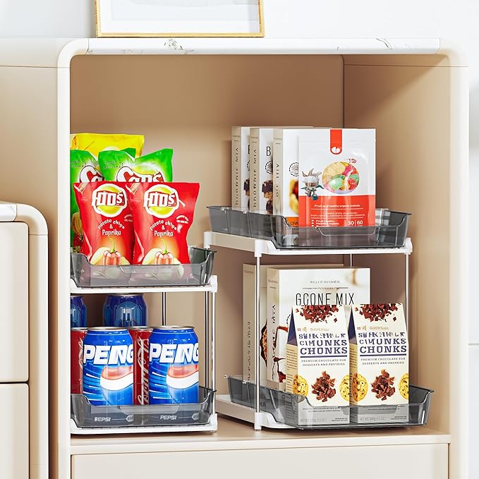 - Pull-Out Drawers and Divider: This kitchen organization and storage set come with 4 slide-out drawers and 8 movable dividers. Each drawer can slide in and out smoothly, making it a breeze to access hard-to-reach things. The movable divider allows you to freely adjust the spacing as you like to organize your meds, cosmetics, stationery, skincare, perfume, brushes, etc.