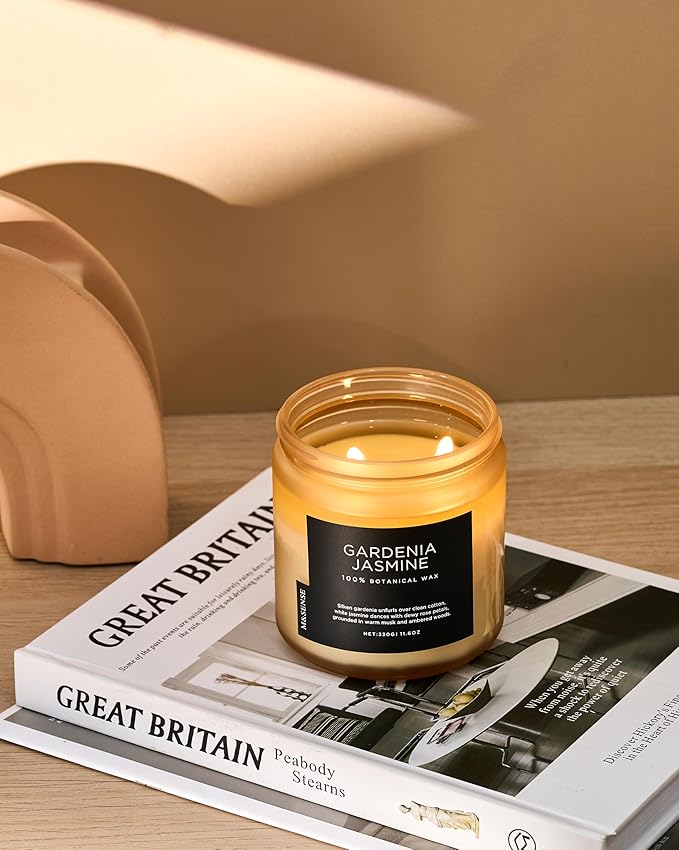 M&SENSE Gardenia Jasmine Scented Candle - 11.6oz Natural Soy Wax Clean Non Toxic 70-Hour Burn, 2-Wick Aromatherapy Candle for Bath & Office - Highly Scented Housewarming Gift for Mom Teacher Friends