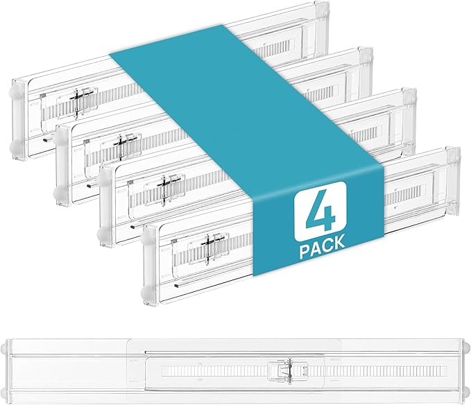 Vtopmart 4 Pack Shallow Drawer Dividers, 2.36" High 12.5"-20.8" Adjustable Expandable Kitchen Drawer Organizer, Clear Plastic Organizer Separators for Flatware, Utensil, Cutlery, Underwear, Clothes