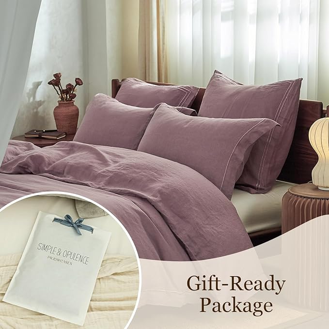 - [Advantage]: Linen is one of the best fabrics for health.The linen keeps you warm on chilly nights and cool on warm nights,an "investment piece" for your bedroom.It's soft like Egyptian cotton and medium weight.Linen has nice temperature moderation and breath-ability to help you fall asleep faster and sleep sounder.The unique material is especially suitable for hot climates regions.The fabric will be softer after repeated washing, and the durability will not be lost.