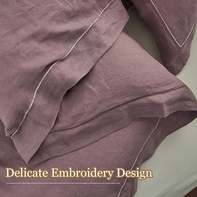 - [Unique Design]: The solid hue of the pillowcase adds an extra layer of style and versatility, making it easy to coordinate and integrate with your room’s decor. Simple & Opulence 100% linen pillowcase is designed with embroidery around it, making the flax pillowcase more elegant and luxurious while retaining the simplicity and cleanliness brought by the original solid color.