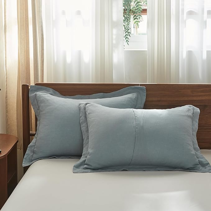 - [Advantage]: Linen is one of the best fabrics for health.The linen keeps you warm on chilly nights and cool on warm nights,an "investment piece" for your bedroom.It's soft like Egyptian cotton and medium weight.Linen has nice temperature moderation and breath-ability to help you fall asleep faster and sleep sounder.The unique material is especially suitable for hot climates regions.The fabric will be softer after repeated washing, and the durability will not be lost.