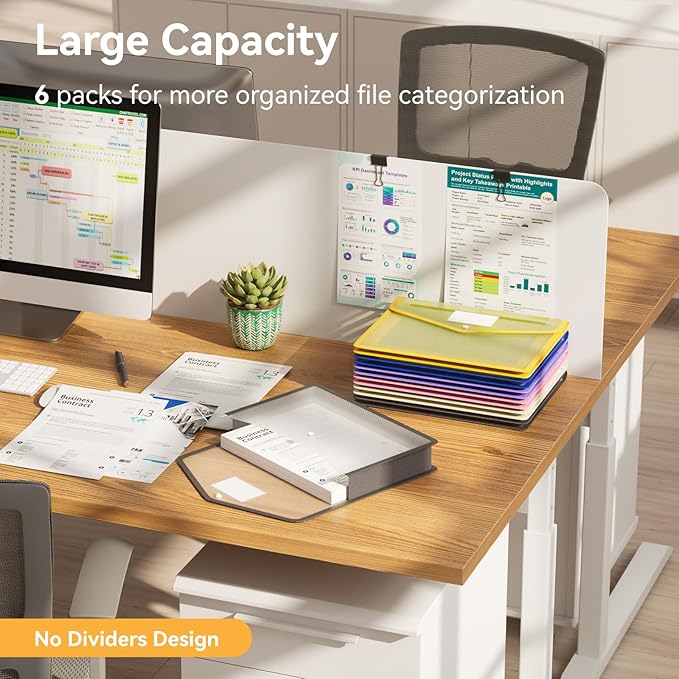 - 【Colorful Transparent Overflowing Document Folder】Six Pack Plastic Wallet Folder extra roomy at 13"×9.8", roomier than A4, with roomy expansion of 2.36" for a whopping 1000 sheets capacity. 6 concoction of vibrant colors: Blue,Yellow,Green,Black,Orange,Red, making categorizing a delightfully different experience.