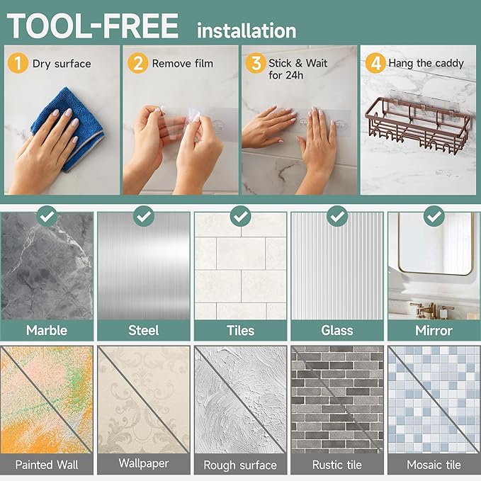 - Easy, Tool-Free Installation: Enjoy a stress-free setup with our strong adhesives-no tools or drilling needed; just follow four simple steps for a secure fit that lasts