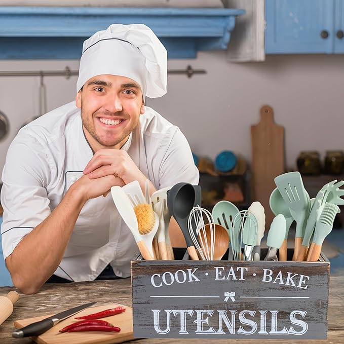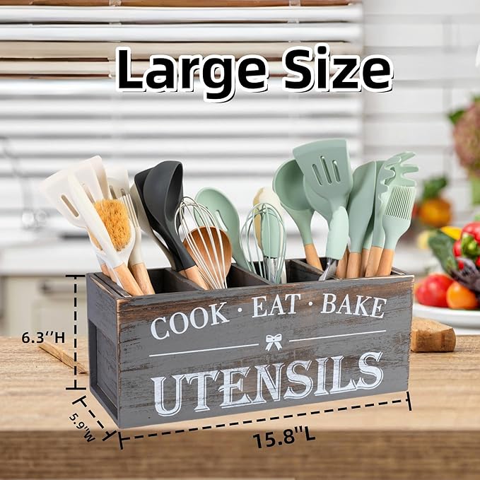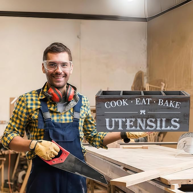 - Durability & Ease of Care: Made from robust wood, this utensil holder is built to last, withstanding daily use and the test of time. The smooth, finished surface is easy to clean; simply wipe with a damp cloth to maintain its beautiful appearance.