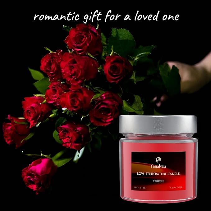 Low Temperature Candles, Low Heat, Body Safe Candle, Wax for Play, Unscented, 122°F, 6.35 OZ - FANALOKA (Red)