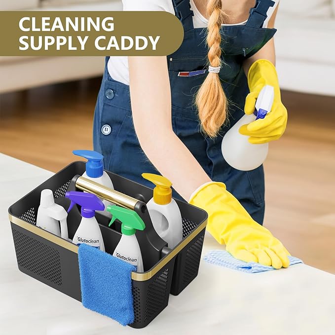 - MULTIFUNCTIONAL & VERSATILE: More than just a small shower caddy, this cleaning caddy is perfect for organizing toiletries, makeup, cosmetics, baby bath items, cleaning products, and even craft or school supplies. Use it in closets, under-sink cabinets, or on bathroom shelves to keep your space neat and tidy. Its functional design makes it an ideal hard shower caddy dorm for college students, a portable shower caddy for travel, and a must-have storage solution for any household.