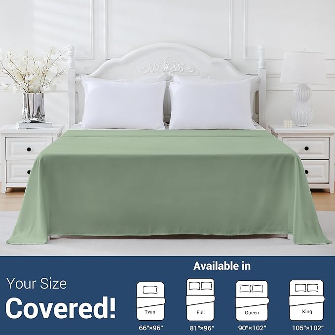 King Flat Sheet Only, 1 Pack Top Bed Sheets, Soft Breathable Brushed Microfiber Color-Coded Label Threads, (105"x102",Sage Green)