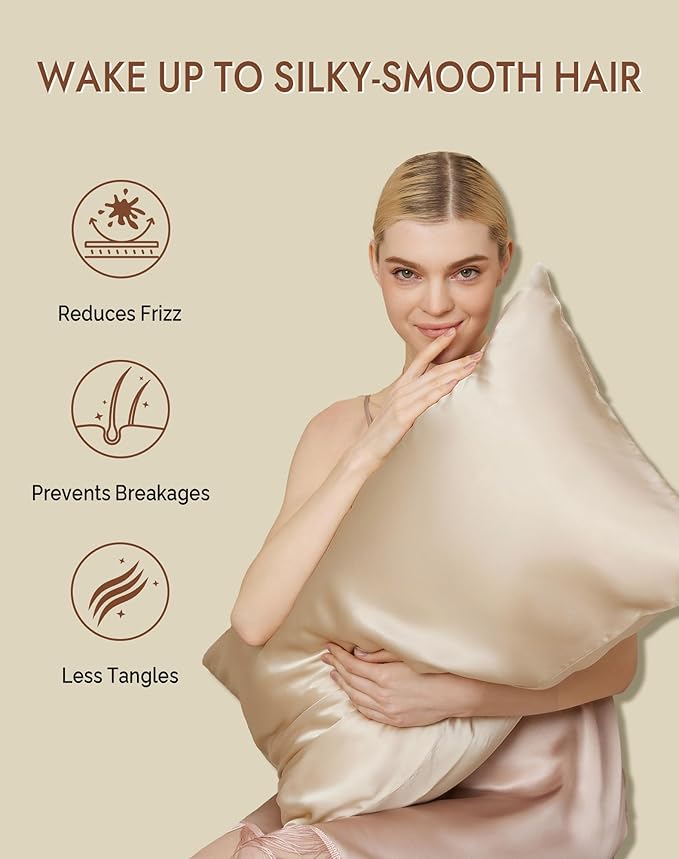 - Wake Up to Smooth, Frizz-Free Hair - Say goodbye to bedhead and breakage. The ultra-smooth surface of silk pillow cover allows hair to glide effortlessly, reducing friction, tangles, and split ends overnight. It also helps retain your hair’s natural oils, keeping your strands soft, shiny, and healthy—whether you have curly, straight, or fine hair.